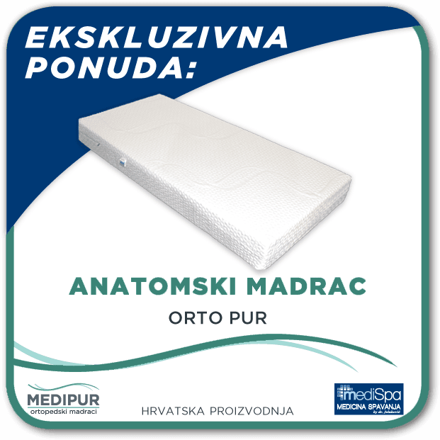 MADRAC – ORTO PUR posebno je udoban, kvalitetan, izdržljiv i dugovječni madrac, uz idealan omjer cijene i visoke kvalitete proizvoda. Osjećaj spavanja na takvoj podlozi klijenti opisuju kao osjećaj bestežinskog stanja. Kod promjene položaja tijela tijekom spavanja madrac se ponovo lagano prilagođava. Noćno okretanje i mikro-buđenje uslijed neudobnog pritiska na ovoj je podlozi znatno smanjeno. Madrac ima izvrstan antidekubitalni učinak i pravo je rješenje za probleme obamrlosti, utrnjenosti i bolne ukočenosti do kojih dovodi loša cirkulacija krvi i limfe.